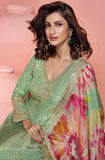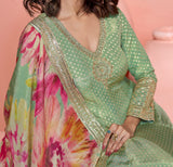 WORK : Zari Embroidery, Mirrors, Sequins, Digital Print, Lace Border