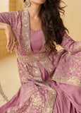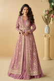 Mauve Rose Designer Embroidered Party Wear Shrug Style Gown with Belt