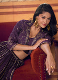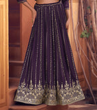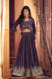 Purple Designer Embroidered Party Wear Jacket Style Chinon Lehenga
