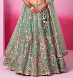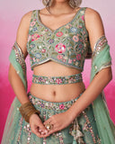 Dusty Mint Designer Embroidered Tissue Organza Wedding Party Wear Saree