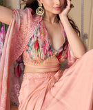 Light Peach Designer Embroidered Party Wear Lehenga with Shrug