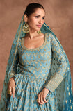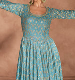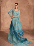 • Shaded Blue Designer Heavy Embroidered Pure Georgette Wedding Anarkali Gown-Saira's Boutique