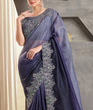 Shaded Dark Purple Designer Saree | Crush Embroidered Saree | Saira's Boutique