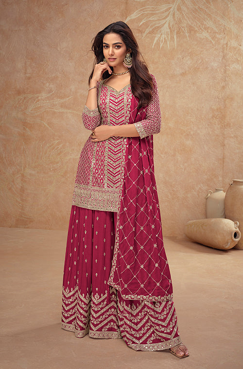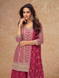 Bright Purple Designer Embroidered Wedding Sharara Suit