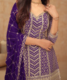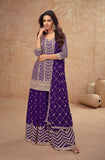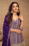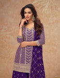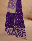 Bright Purple Designer Embroidered Wedding Sharara Suit