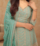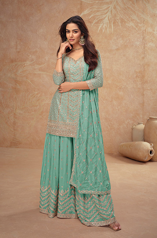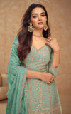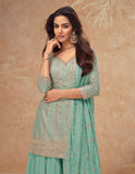 Teal Green Designer Embroidered Wedding Sharara Suit