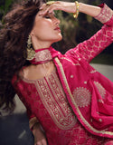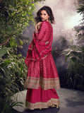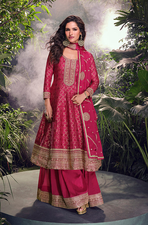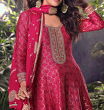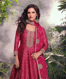 Magenta Designer Embroidered Jacquard Silk Anarkali Style Palazzo Suit