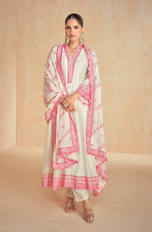 Pink & Off White Designer Embroidered Premium Silk Salwar Suit