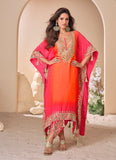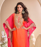 • Shaded Orange Designer Embroidered Crepe Silk Party Wear Kaftan Suit-Saira's Boutique