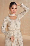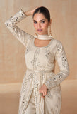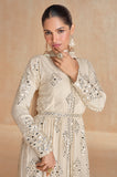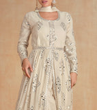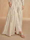 Cream Beige Designer Embroidered Pure Georgette Pant Style Anarkali Suit