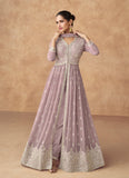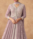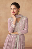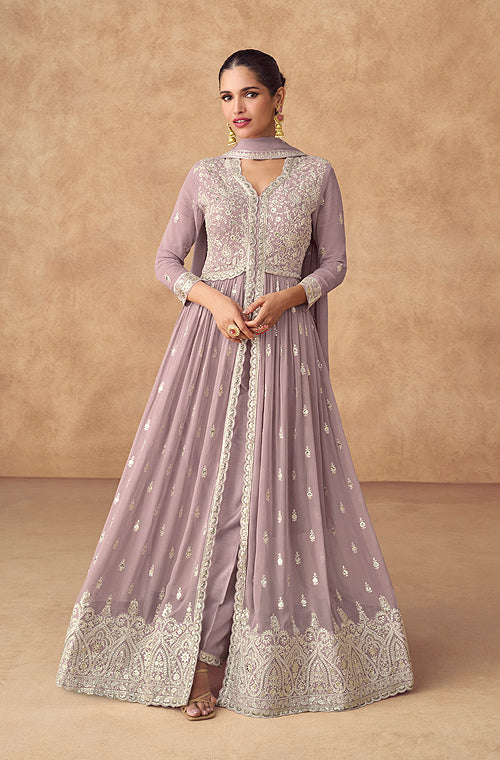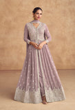 Light Mauve Designer Embroidered Pure Georgette Pant Style Anarkali Suit