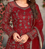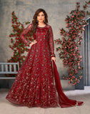 Maroon Designer Heavy Embroidered Net Party Wear Anarkali Gown