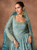 Shaded Blue Designer Heavy Embroidered Pure Georgette Wedding Anarkali Gown