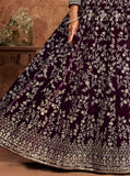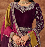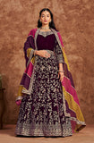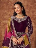 Dark Wine Designer Heavy Embroidered Velvet Anarkali Suit