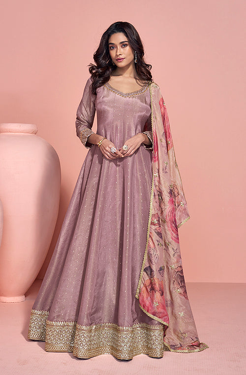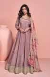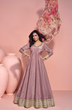 • Dull Mauve Designer Embroidered Pure Jacquard Silk Anarkali Suit-Saira's Boutique