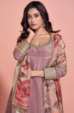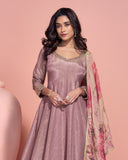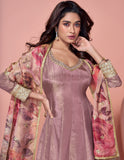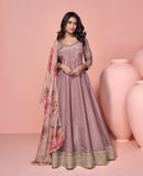 Dull Mauve Designer Embroidered Pure Jacquard Silk Anarkali Suit