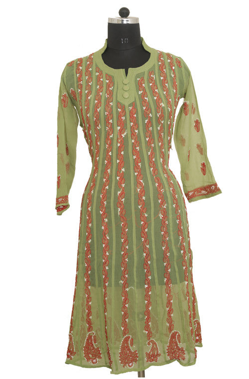 PageView Mehendi Green Georgette Anarkali with Chikankari Embroidery – Saira's Boutique