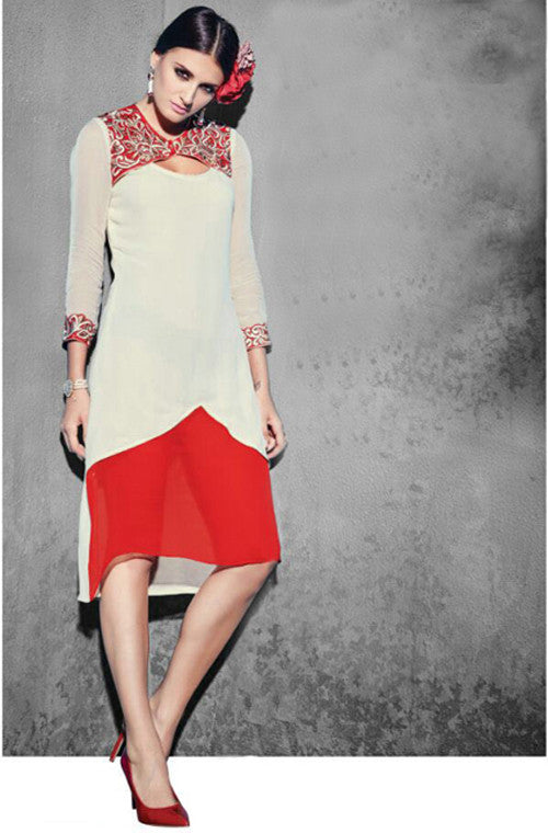 Red & White Georgette Designer Kurti