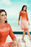This stylish pink & orange combination georgette kurti features an embroidered pattern on the neckline and the sleeves adding grace to the outfit, perfect for day or night wear. Available as stitched (ready-to-wear).