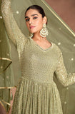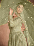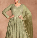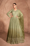 Shaded Olive Designer Heavy Embroidered Pure Georgette Wedding Anarkali Gown