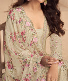 WORK : Silk Thread Embroidery, Mirrors, Sequins, Cut Work, Digital Floral Print, Lace Border