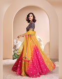Shaded Pink Yellow Designer Embroidered Chinon Silk Sharara Suit