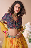 Shaded Citrus Yellow Designer Embroidered Chinon Silk Sharara Suit
