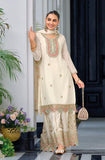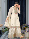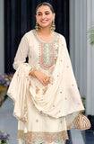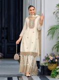 White Designer Embroidered Chinon Silk Party Wear Palazzo Suit