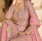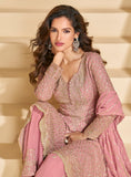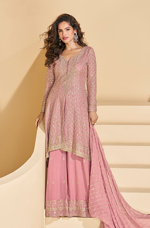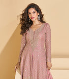Dull Mauve Designer Embroidered Wedding Sharara Suit