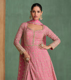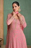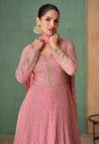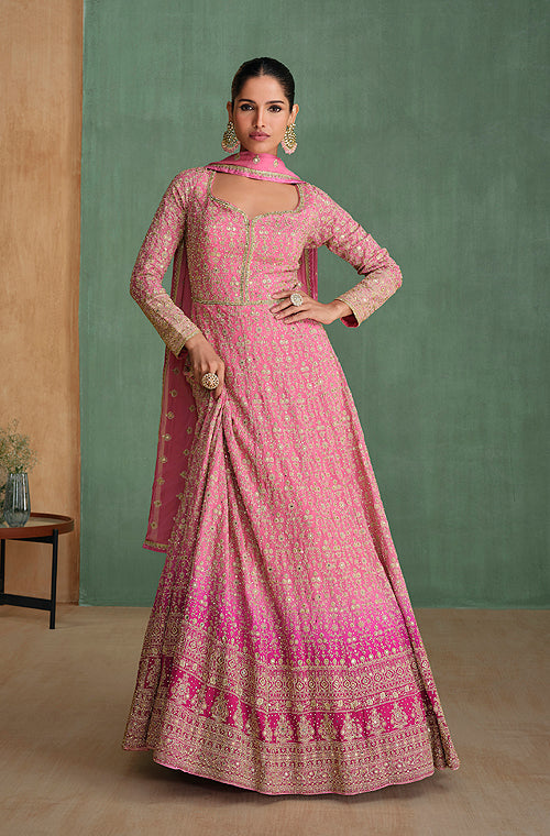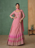 Pink Designer Embroidered Premium Chinon Silk Anarkali Gown