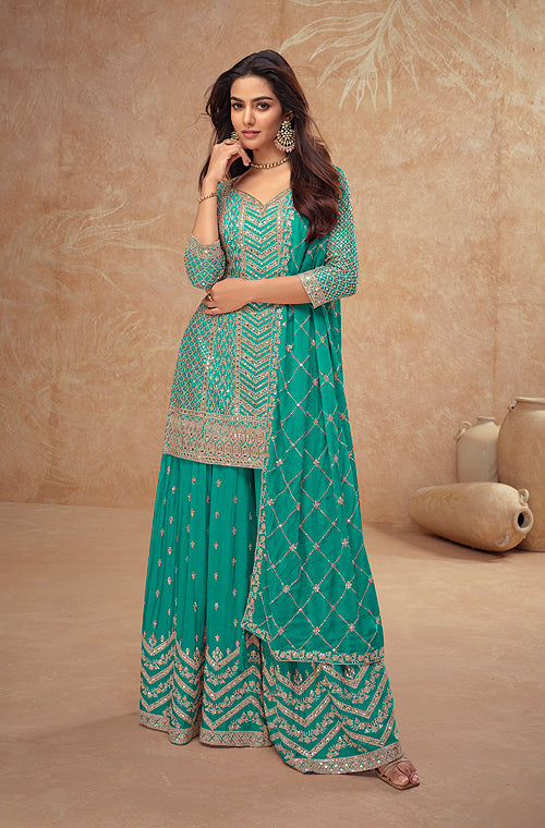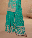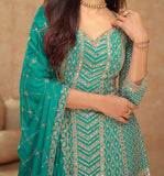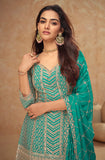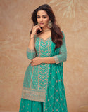 Teal Green Designer Embroidered Wedding Sharara Suit